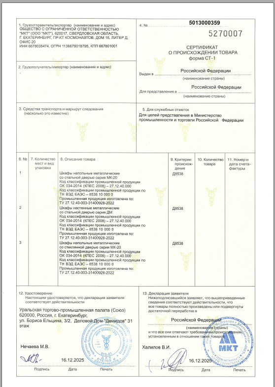 Получение сертификата СТ‑1 — важный шаг в развитии компании, который расширяет возможности для сотрудничества в сфере госзакупок и подтверждает соответствие продукции установленным стандартам качества.