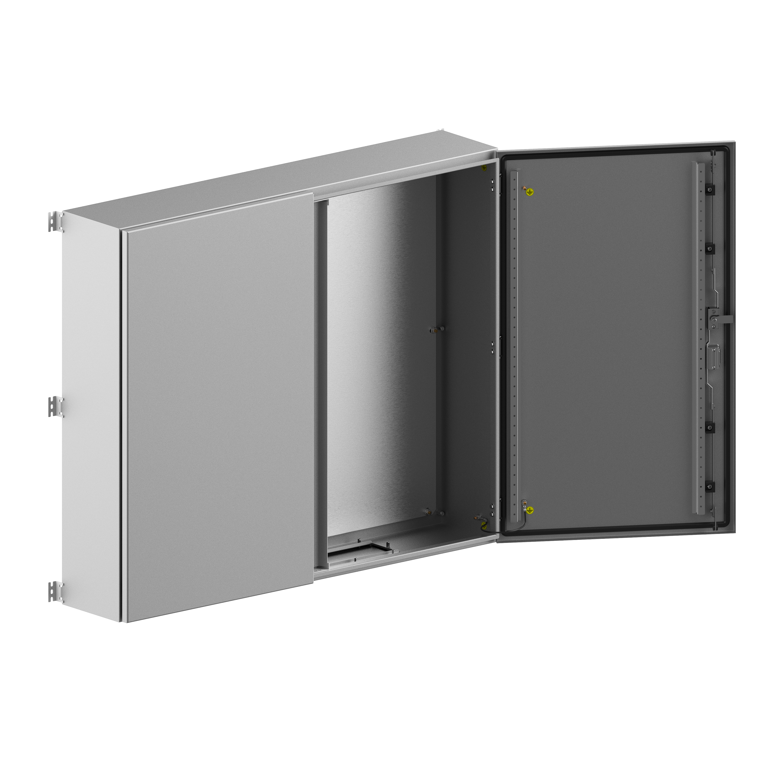 Корпус шкафа; 1 стальная дверь; 1 монтажная панель; 1 провод заземления; Настенное крепление |